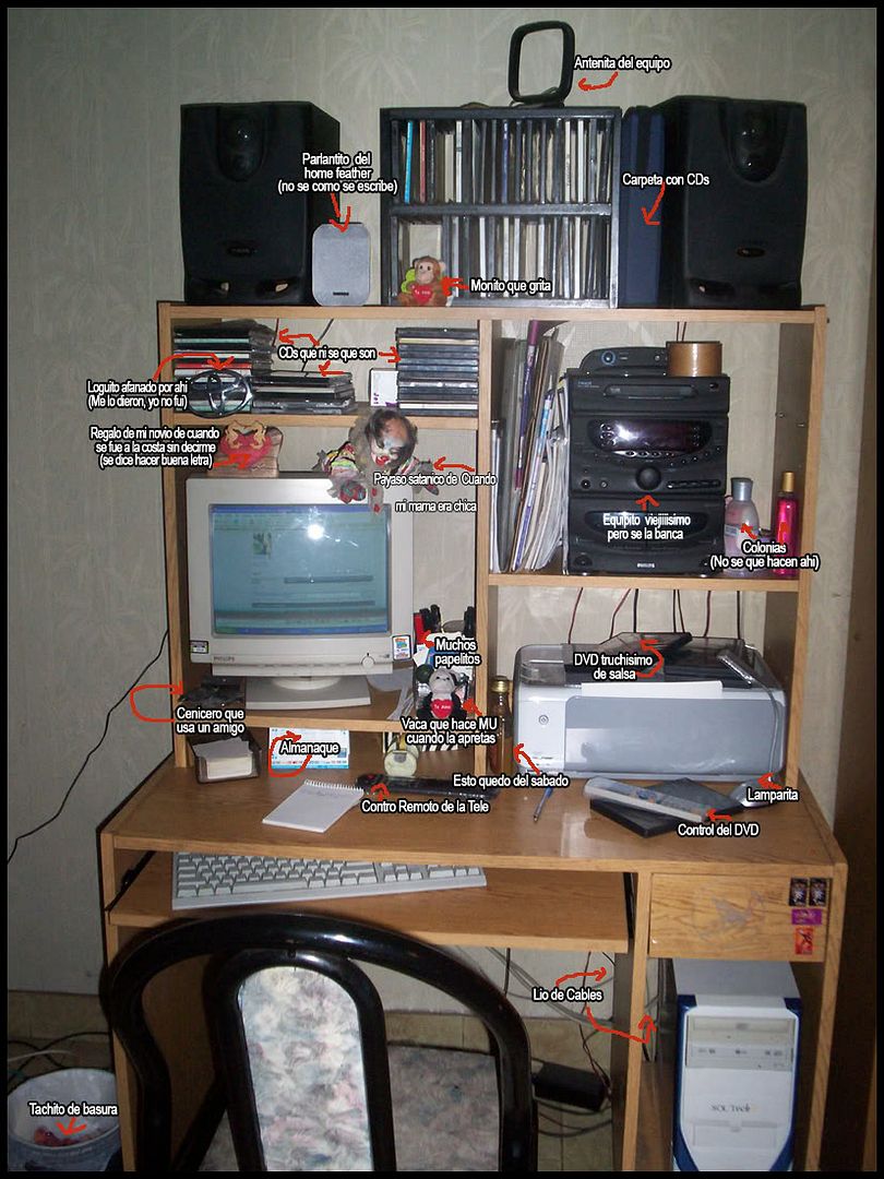 Notese la perca rota y los cables que siempre me engancho en los pies y al querer salir arranco todo del cpu...algun dia lo voy a arreglar!
